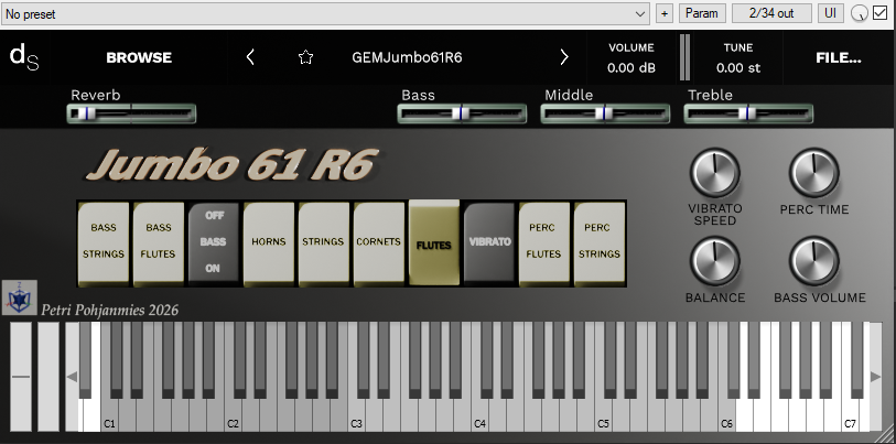 The GEM Jumbo 61 R6 is an Italian clone of the VOX organ from 1976. It's not really a Hammond, but the sound world is rich and full of nostalgia. The bass side is strong.