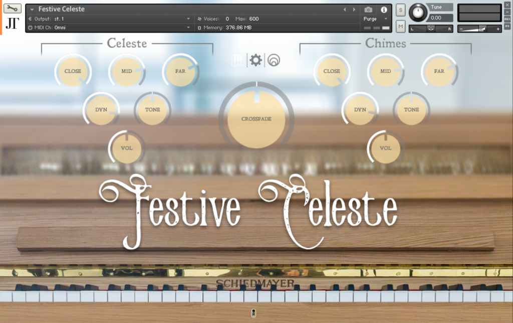My workplace just recently procured a new, Schiedmayer 5.5 octave instrument and I was overwhelmed with how beautiful it is. Before sitting down at the keyboard, I didn’t realize how three dimensional it is sound-wise. The hammers and resonators are situated in surprising places. C2 might sound from the extreme left, while E2 sounds from the extreme right. After realizing how unique the layout is, I switched from the plan to record in fifths and instead sample EVERY KEY. This resulted in a sh*t ton of sample work, but I hope you get a sense of how immersive this instrument sounds through Festive Celeste.