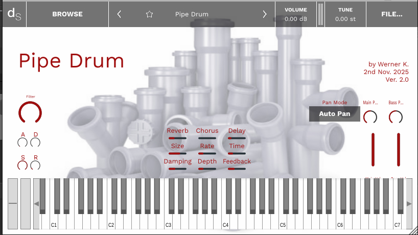 I wanted the pipe drum to sound as if I play a piano with low notes left and high notes right. (A rather “binding” Decent Sampler lesson as you can see in the dspreset-File) You can choose this mode now with a button or remain at manual panning.